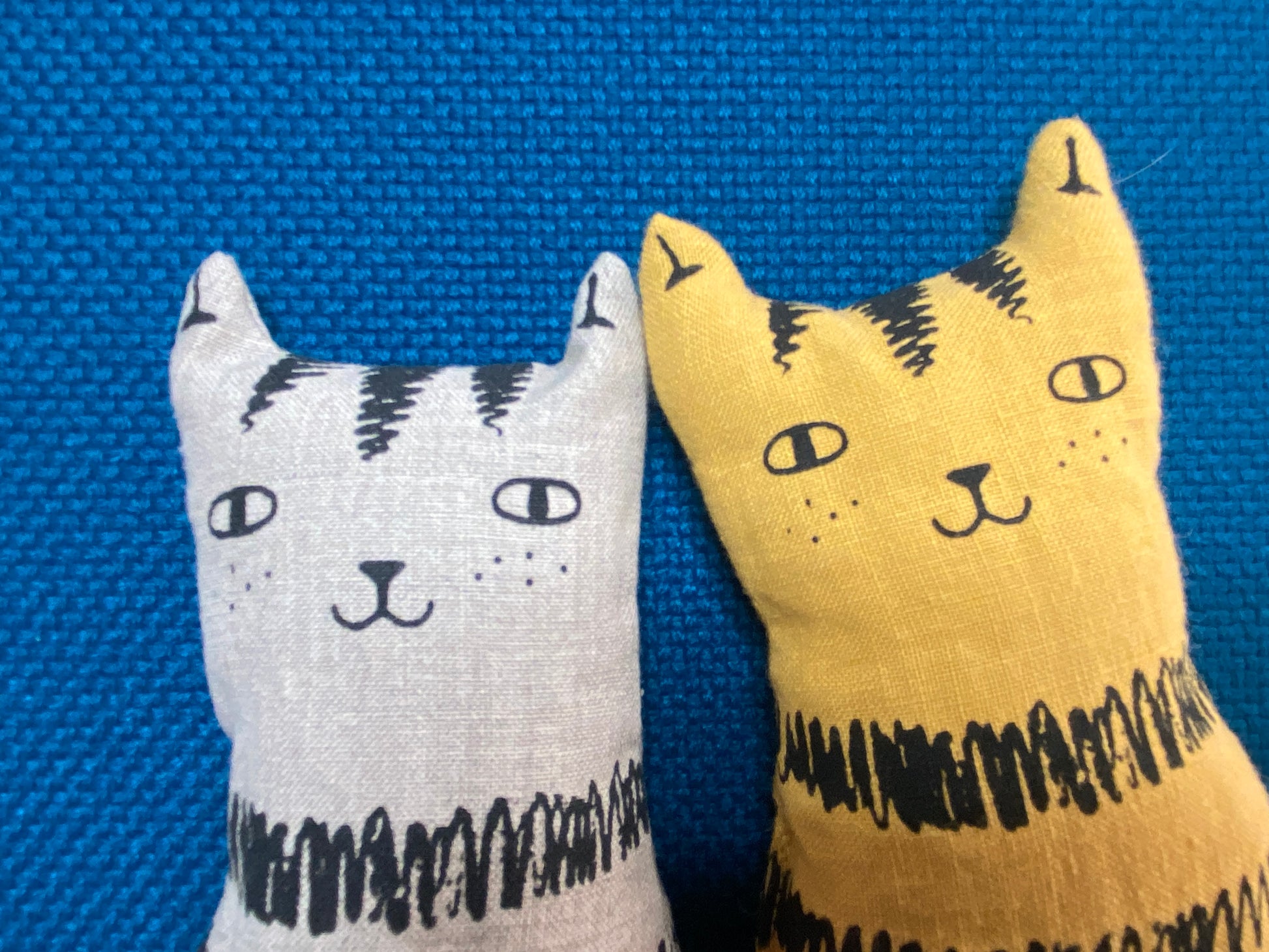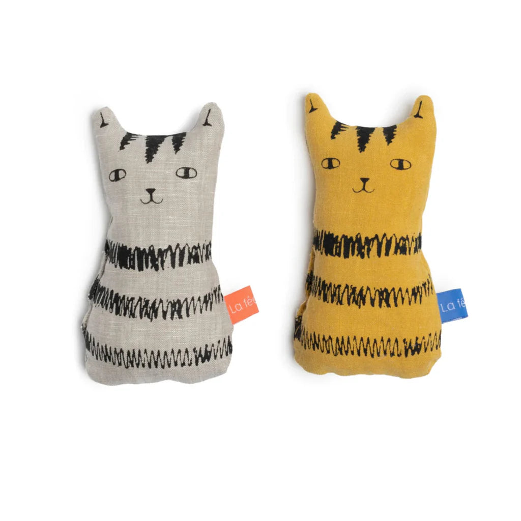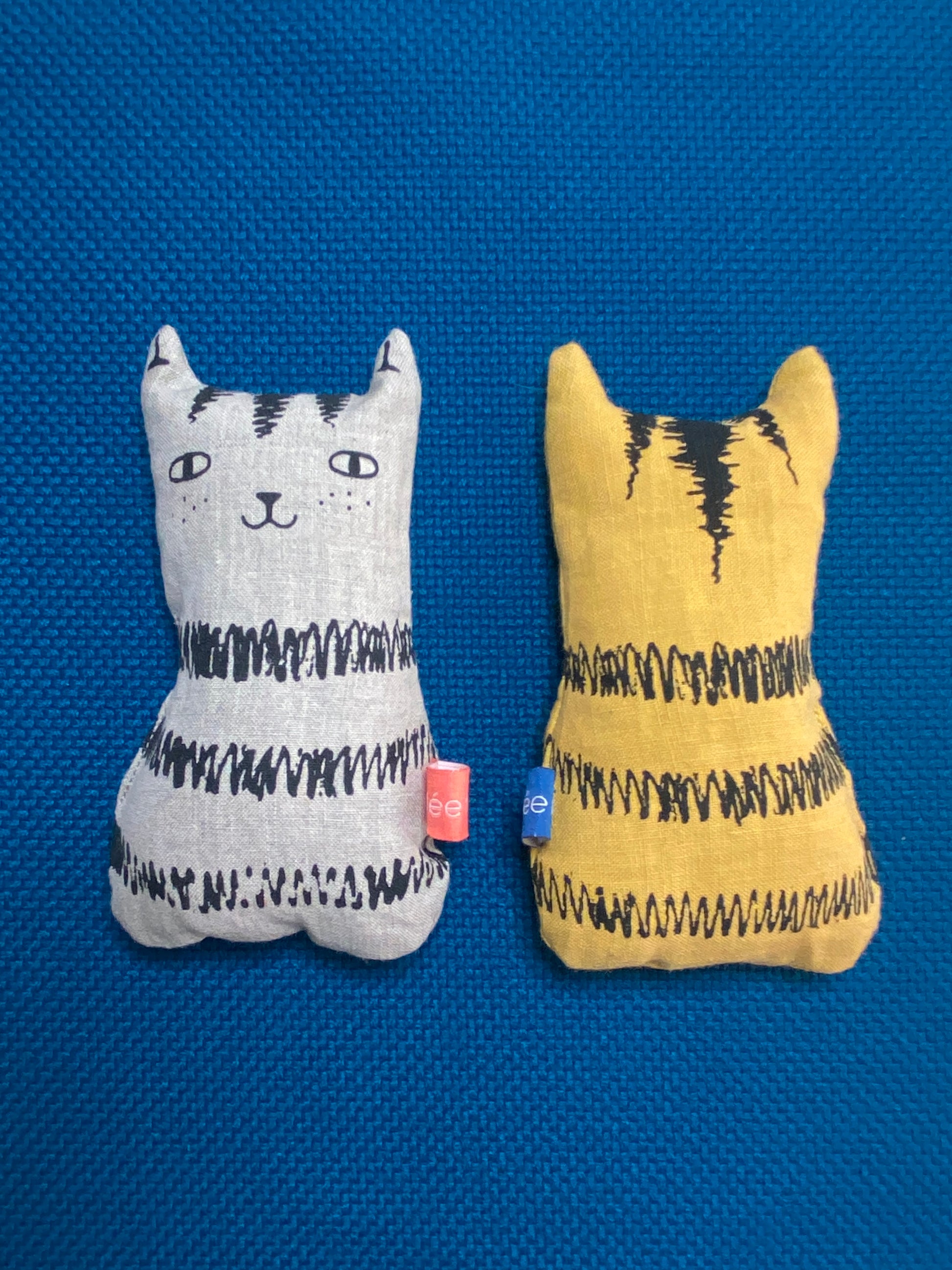 Léon the Cat is made from 100% OEKO-TEX Standard 100-certified linen, hand-printed with non-toxic water-based ink. The rattle is filled with polyester stuffing and a safety rattle pellet that emits a little sound when shaken. To clean, hand wash and dry flat. Léon measures 3 x 8 cm.